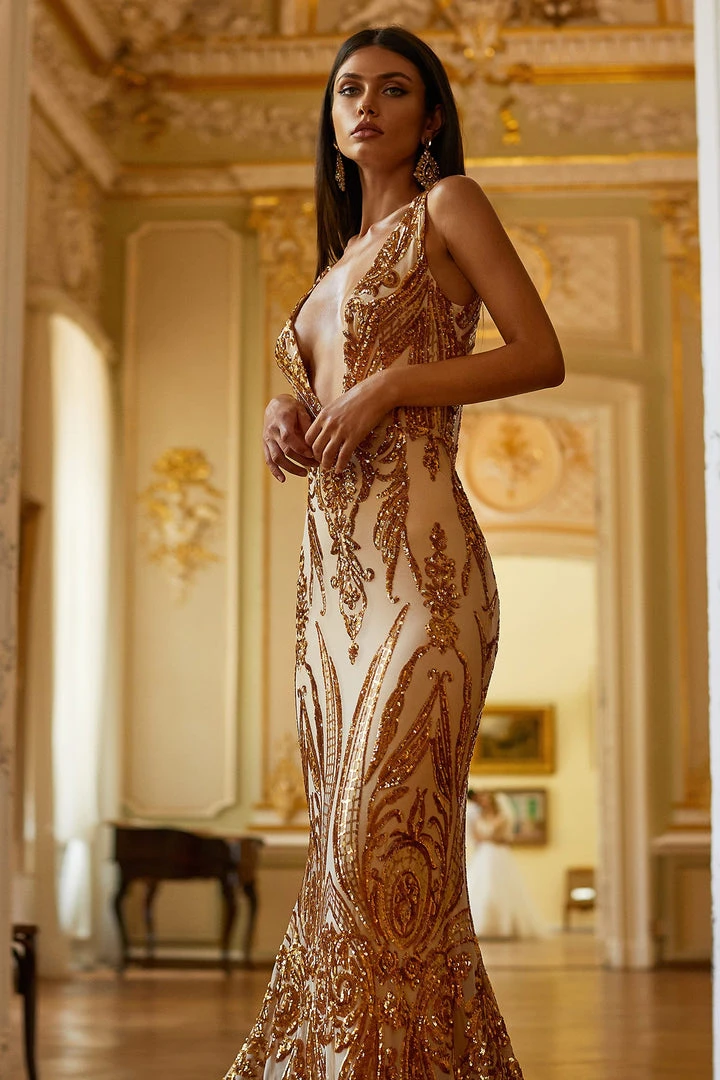 Maurita gown is the must-have prom dress. Made from new shimmering sequin fabric that hugs your figure all in the right places. It features a deep plunge neckline with an open back. The gown is fully lined.
