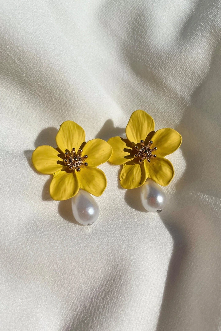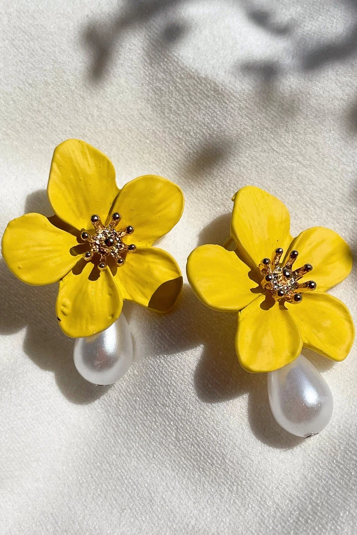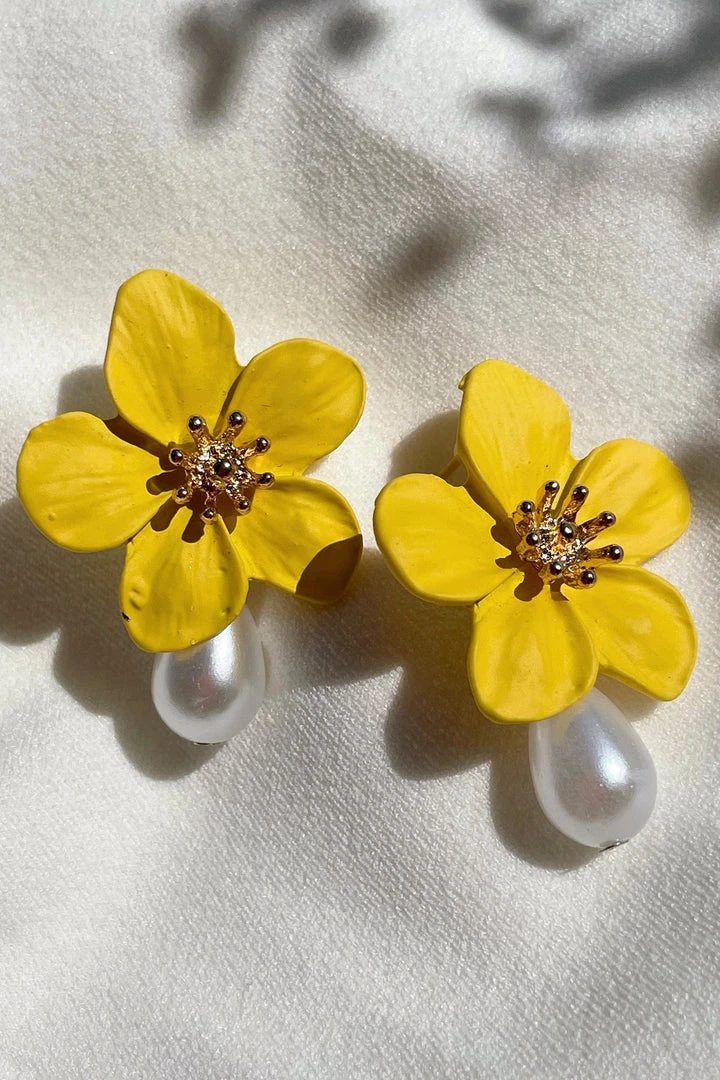 Complete your outfit with the Adele Yellow Flower Pearl StudsCrafted with a gold hardware center and pearl statement. This flower stud will be the perfect addition to your outfit.