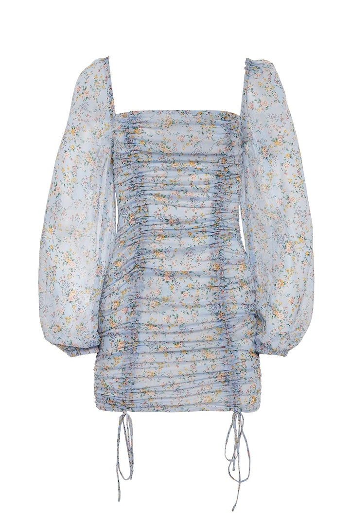 This figure-skimming mini dress perfectly adheres to the spring season with its floral pattern, sheer balloon sleeves, and adjustable side ties. Constructed from a lightweight chiffon fabric, the Mailys Dress will be a staple piece for your trans-seasonal wardrobe.