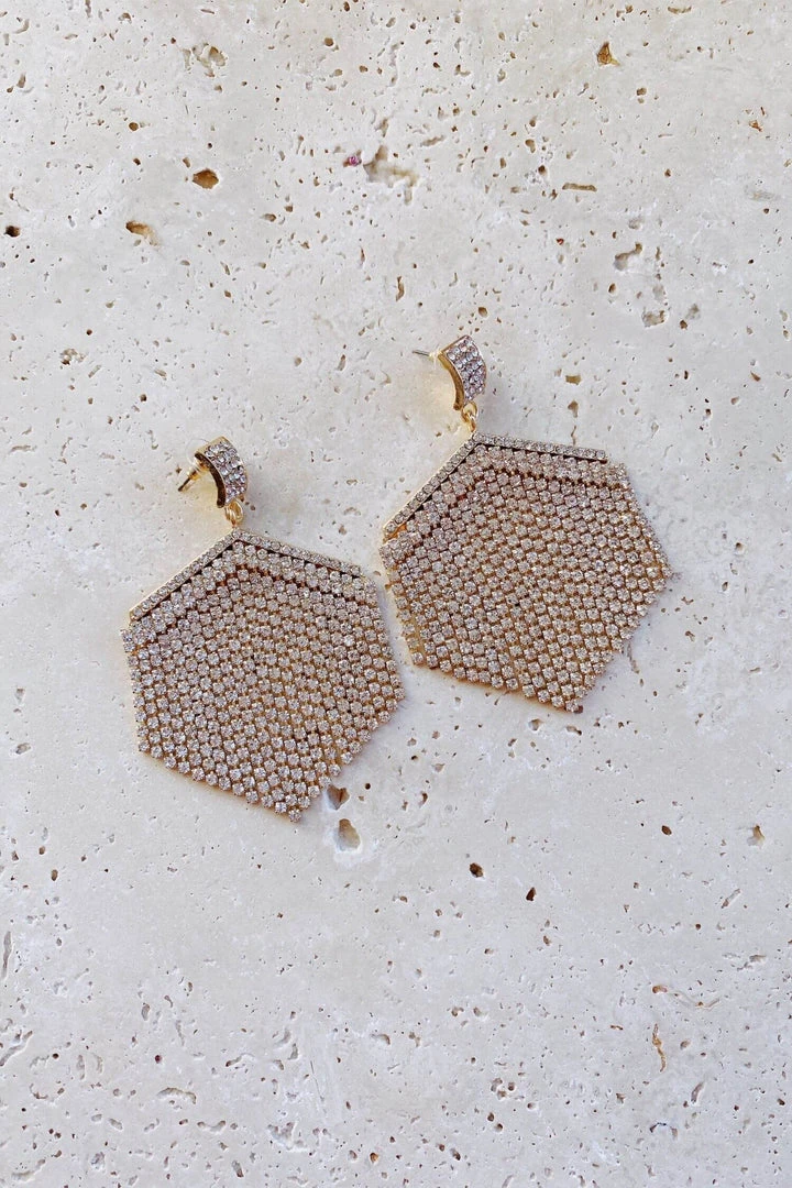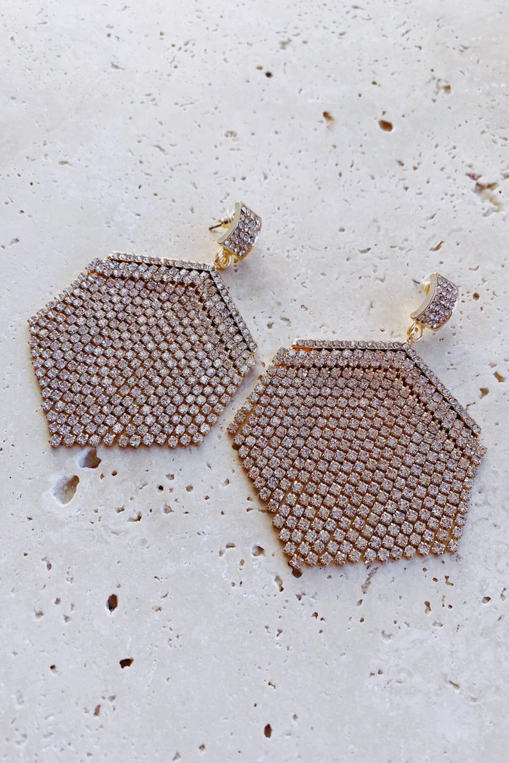 The Elmira Gold Crystal Drop Earrings will be the perfect finishing touch on your next gown. This intricate and elegant design features silver/gold crystal detailing. They also have a clip on back.