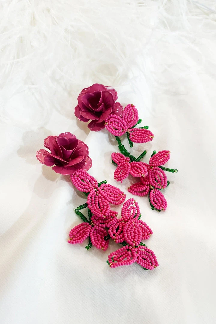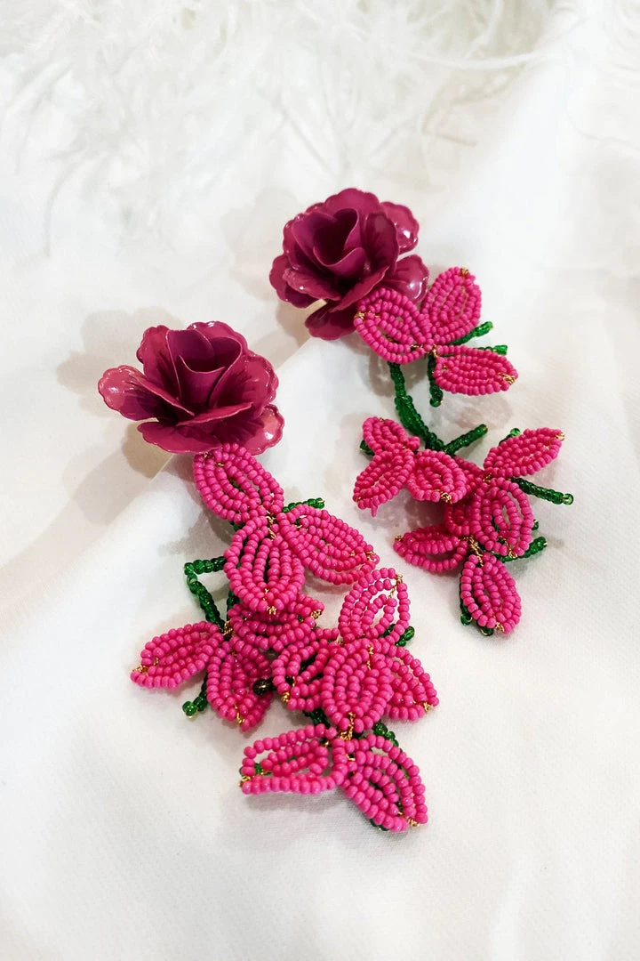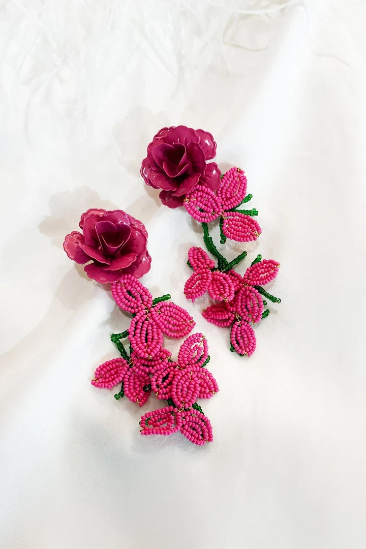 The Fiorenza Floral Beaded Earrings will elevate your vacation look. Crafted from mini beads with a metal flower stud. These earrings will be sure to turn heads.