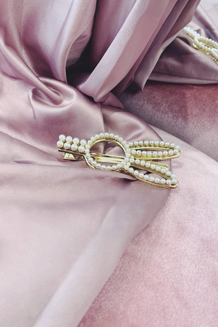 The Gold Pearl Bunny Hair Clip is perfect. It features a unique bunny design with pearl detailing. We love pairing this style with our flowy gowns.Â