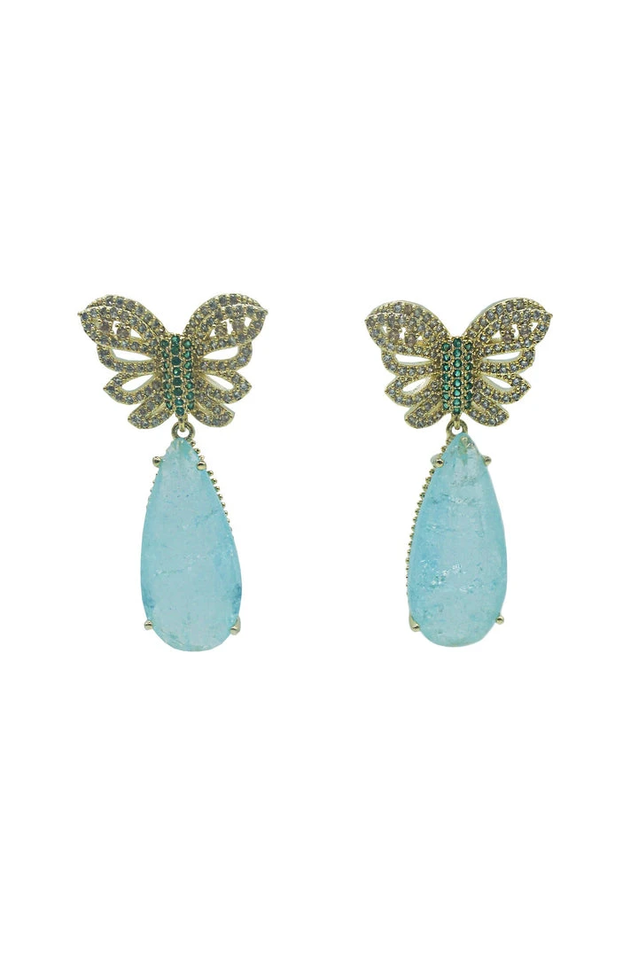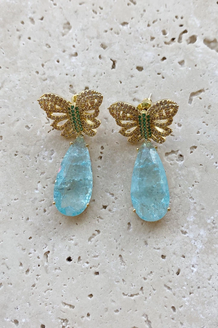 The Lulu Baby Blue Drop Butterfly Earrings will be your best accessory of the night! Including stunning baby blue coloured crystal with butterfly studs, you will love these paired with any dress.