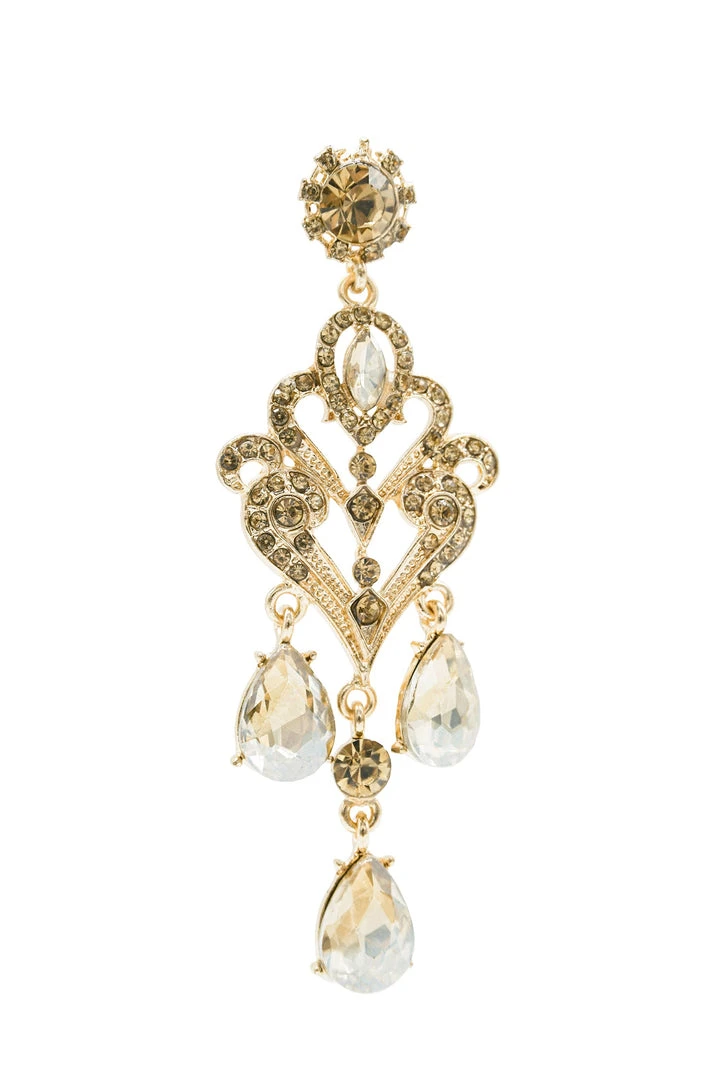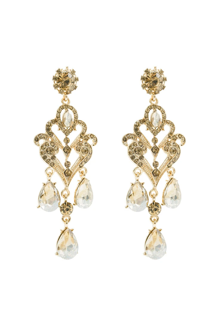 The Margot Gold Chandelier Earrings will be your best accessory of the night. Designed with gold crystals and additional gold hardware, this style will pair effortlessly with your gown.