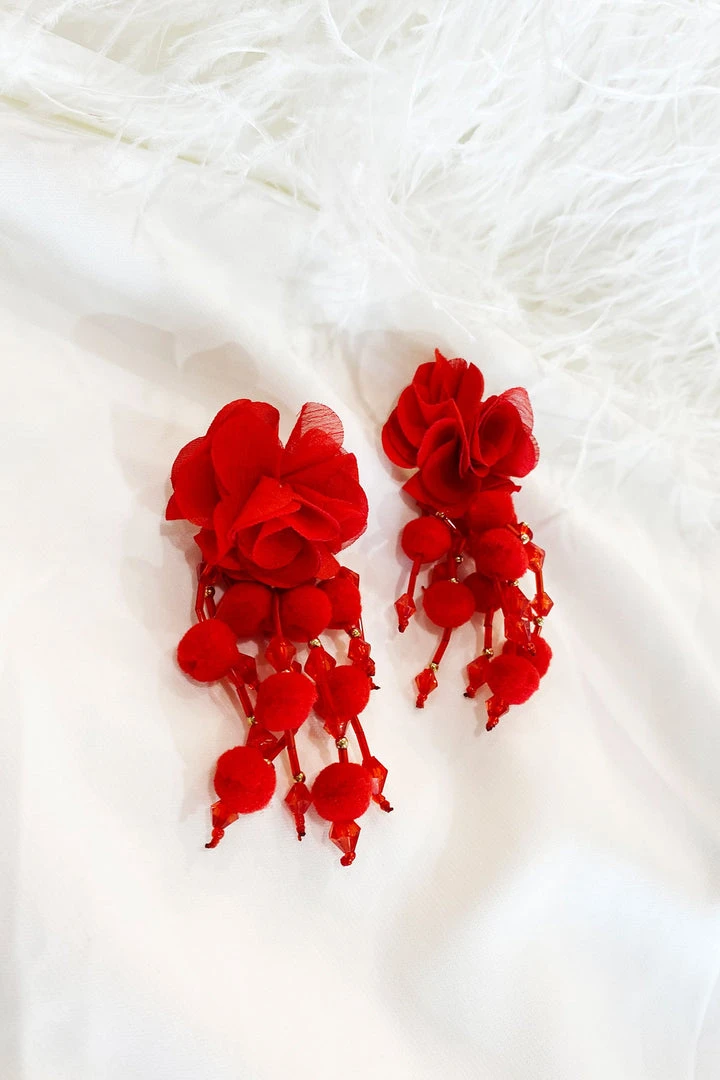 The Shailee Red Flower Drop Earrings are one of many new additions to our earring collection. Embellished with mini beads and statement flowers, these earrings will be sure to make a statement.Â