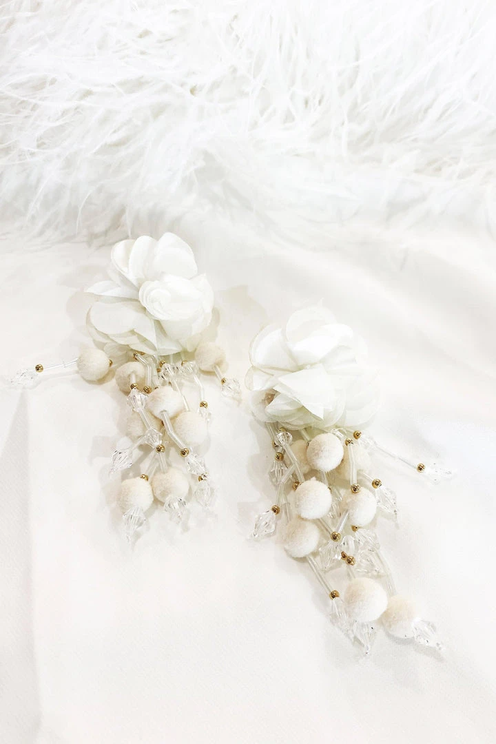 The Shailee White Flower Drop Earrings are one of many new additions to our earring collection. Embellished with mini beads and statement flowers, these earrings will be sure to make a statement.Â