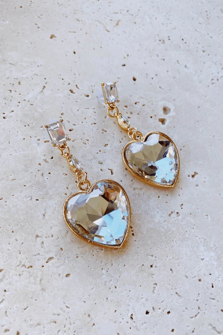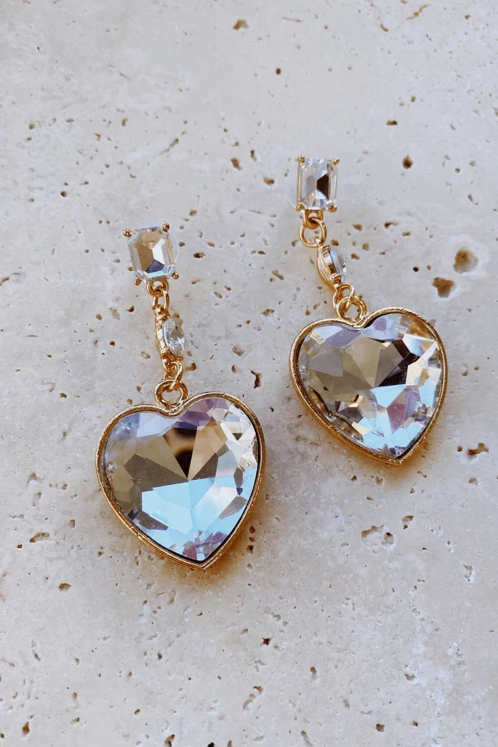 The Oddette Gold Heart Crystal Drop Earrings will look perfect at your next formal or wedding. This design is the perfect is classy with a touch of feminine. They feature pierced push back fastening for your convenience.