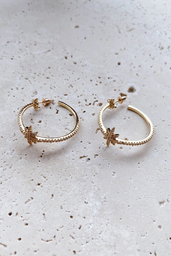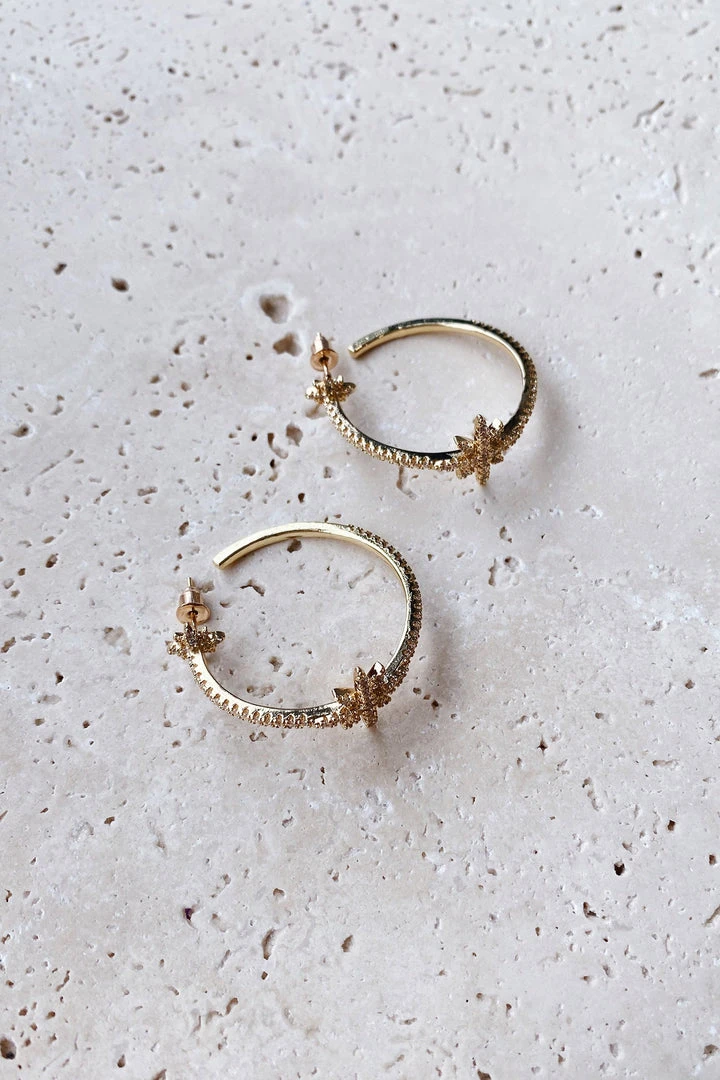 Glitz & glam, the Olesya Earrings will be sure to make you stand out. These stunning gold hoops are embellished with little diamantes and feature a unique star addition.