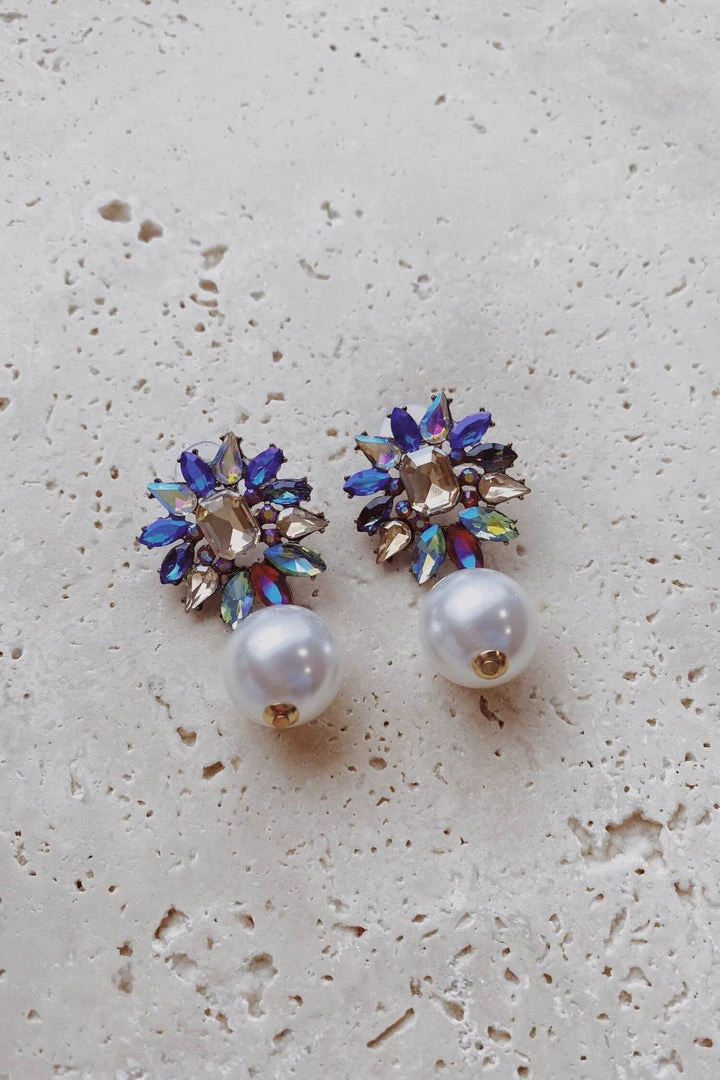 The Saskia Multi Crystal Pearl Earrings are a beautiful yet unique addition to your formal or wedding gown. This intricate and elegant design creates the ultimate statement earring. They feature pierced push back fastening for your convenience.