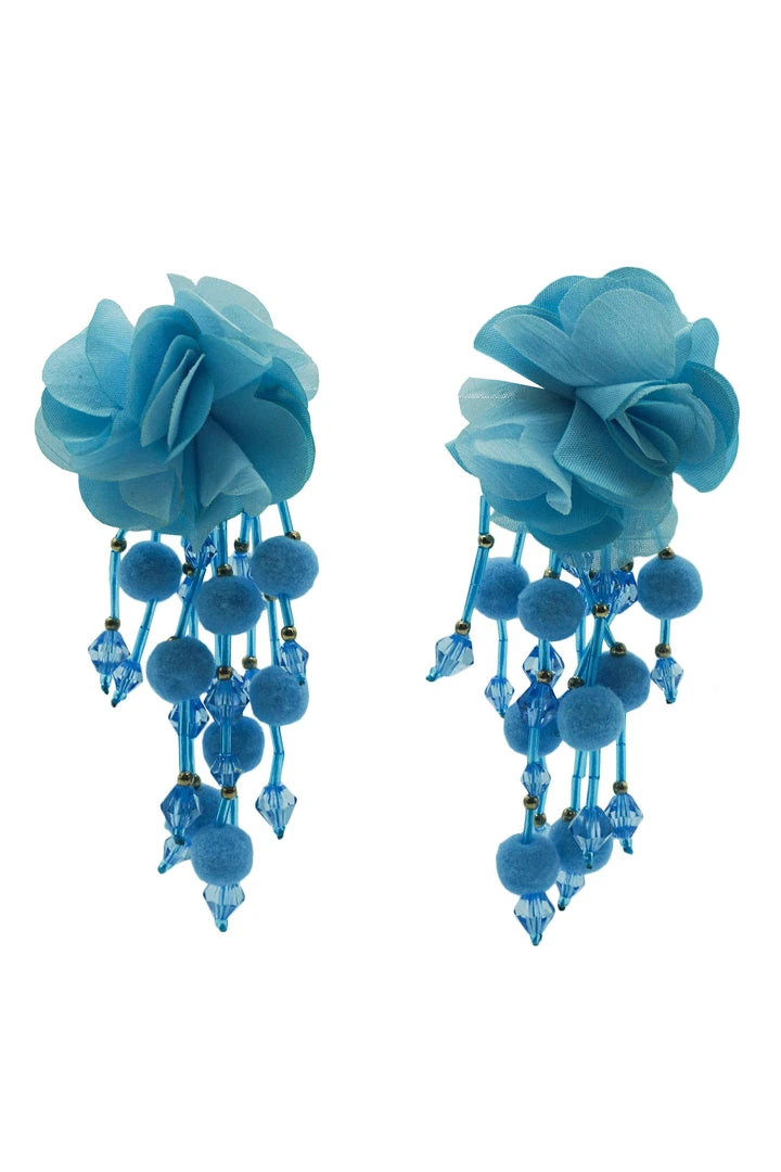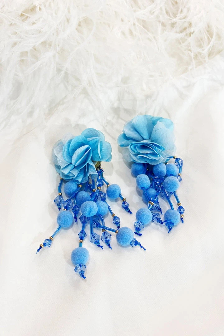 The Shailee Blue Flower Drop Earrings are one of many new additions to our earring collection. Embellished with mini beads and statement flowers, these earrings will be sure to make a statement.