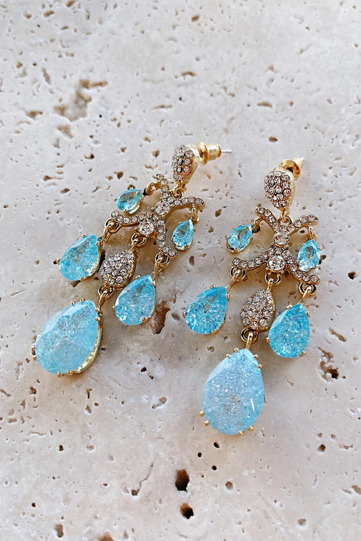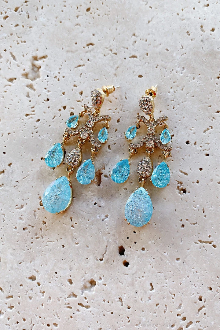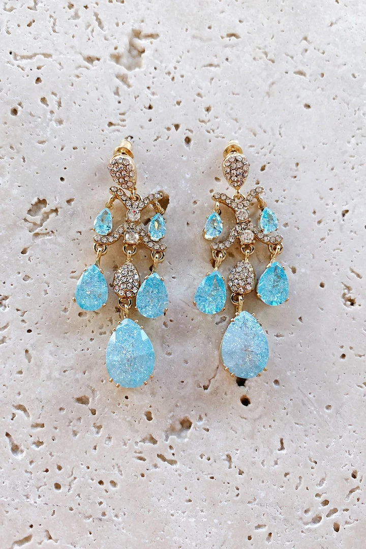 The Yoven Drop Earrings will be your best accessory of the night! Including stunning baby blue coloured crystal with diamante embellishments, you will love these paired with any simple dress.